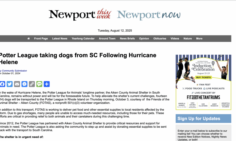 Potter League taking dogs from SC Following Hurricane Helene Post Navigation ← Previous PostNext Post →